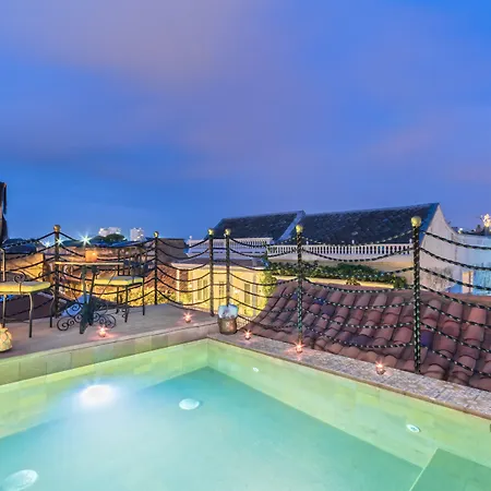 Los huéspedes del hotel Monaguillo de Getsemaní Cartagena también pueden hacer uso de una piscina en la azotea.